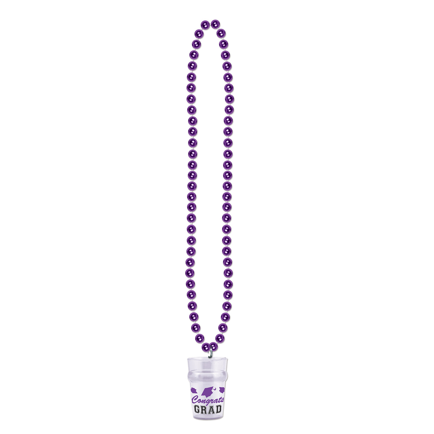 Celebrate graduation in style with these purple beads featuring a graduation glass accent. The 33" string length ensures they make a festive addition to your celebration. Made from durable plastic, these beads are a fun, high-quality way to commemorate the special day.