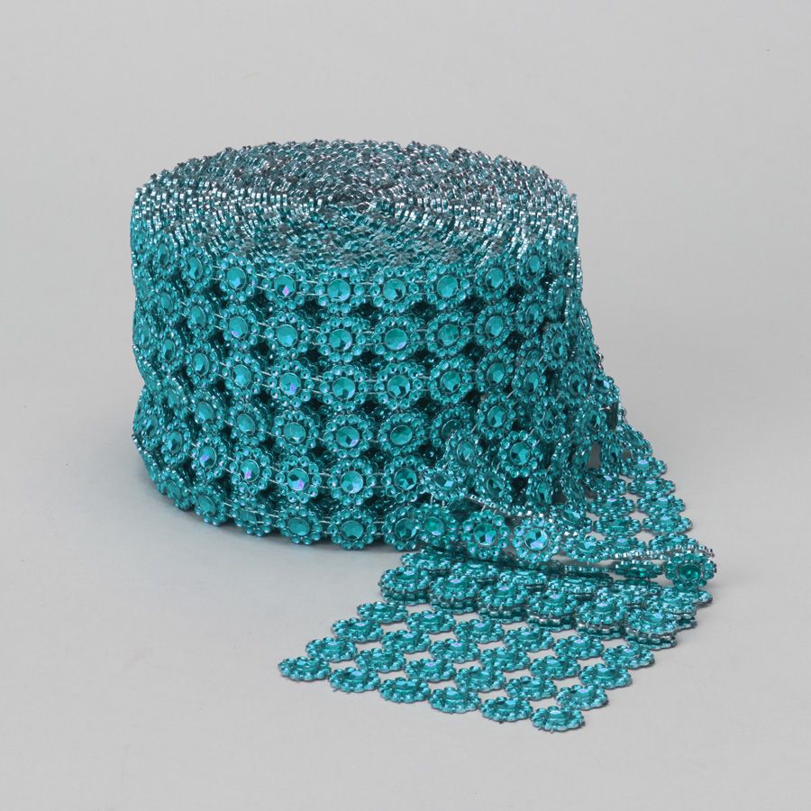 This dazzling turquoise diamond flower shape mesh roll adds a touch of sparkle and elegance to any décor or craft project. Measuring 4 5/8 inches wide and 10 yards long, this decorative mesh features a unique diamond and flower pattern that creates a beautiful shimmering effect. It's perfect for adding a touch of glamour to vases, centerpieces, gifts, or any DIY creation.