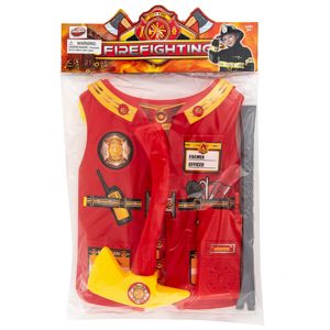 Firefighter play set is perfect for imaginary fun. Product includes vest and accessories. Product: 9.75 x 12.75 x 1 inches (vest). Packaging: 11 x 17 x 1.5 inches in a carded polybag.