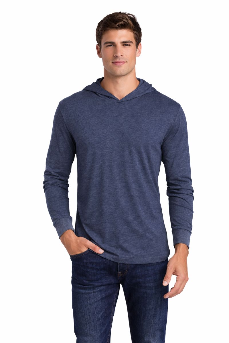12 Wholesale Mens Unisex Triblend Hooded Long Sleeve Pullover T-Shirt Size X-Large Indigo