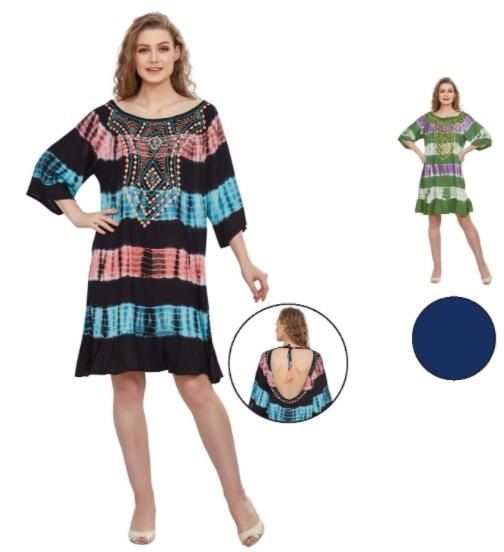Embrace bohemian style with our 12 Wholesale Tie Dye Open Back Concept Medium Sleeve Dresses. This bulk pack is perfect for retailers seeking unique and trendy dresses for their customers.
