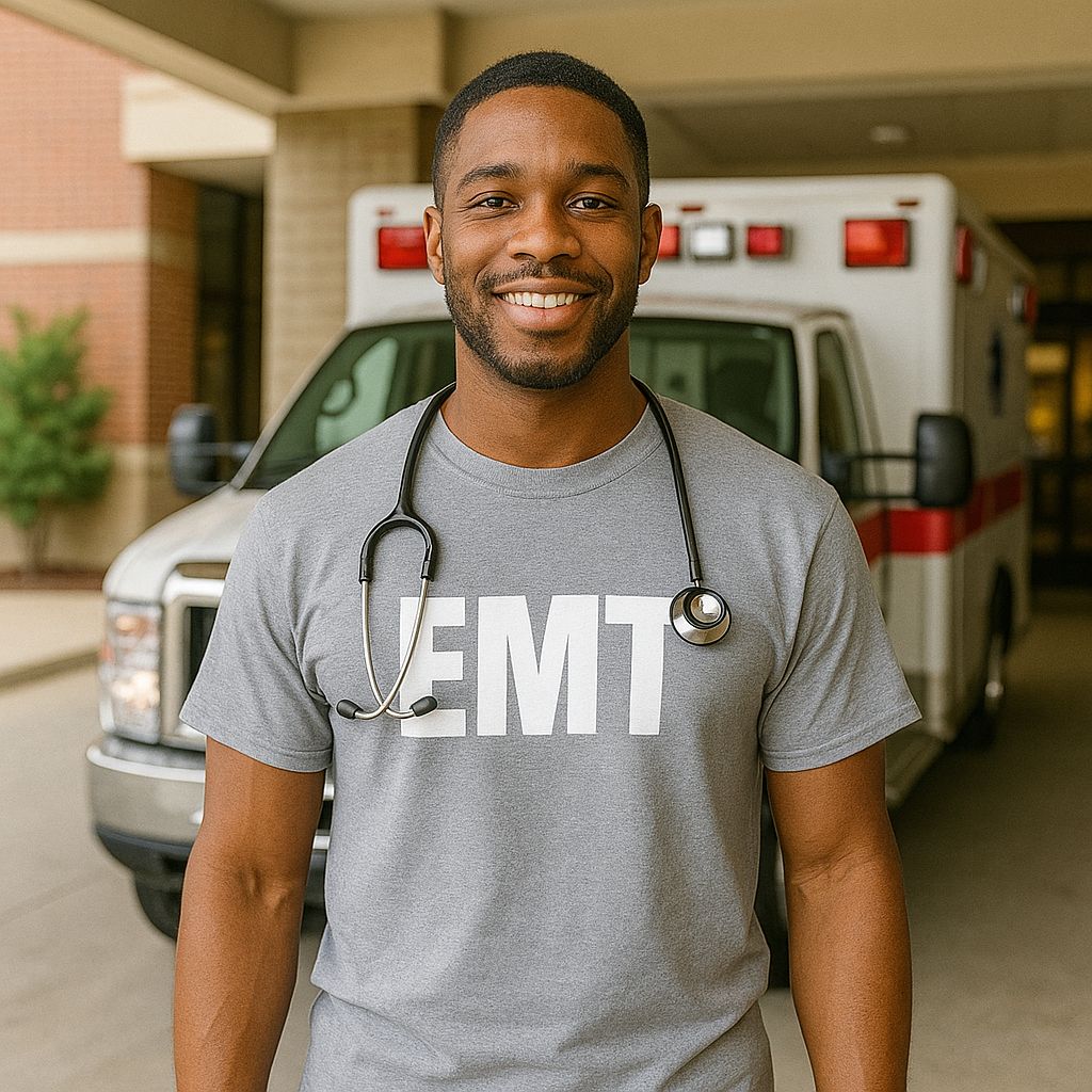 12 Wholesale Unisex Cotton Emt Printed T Shirt Navy With White Print Back And Front Size 3X-Large