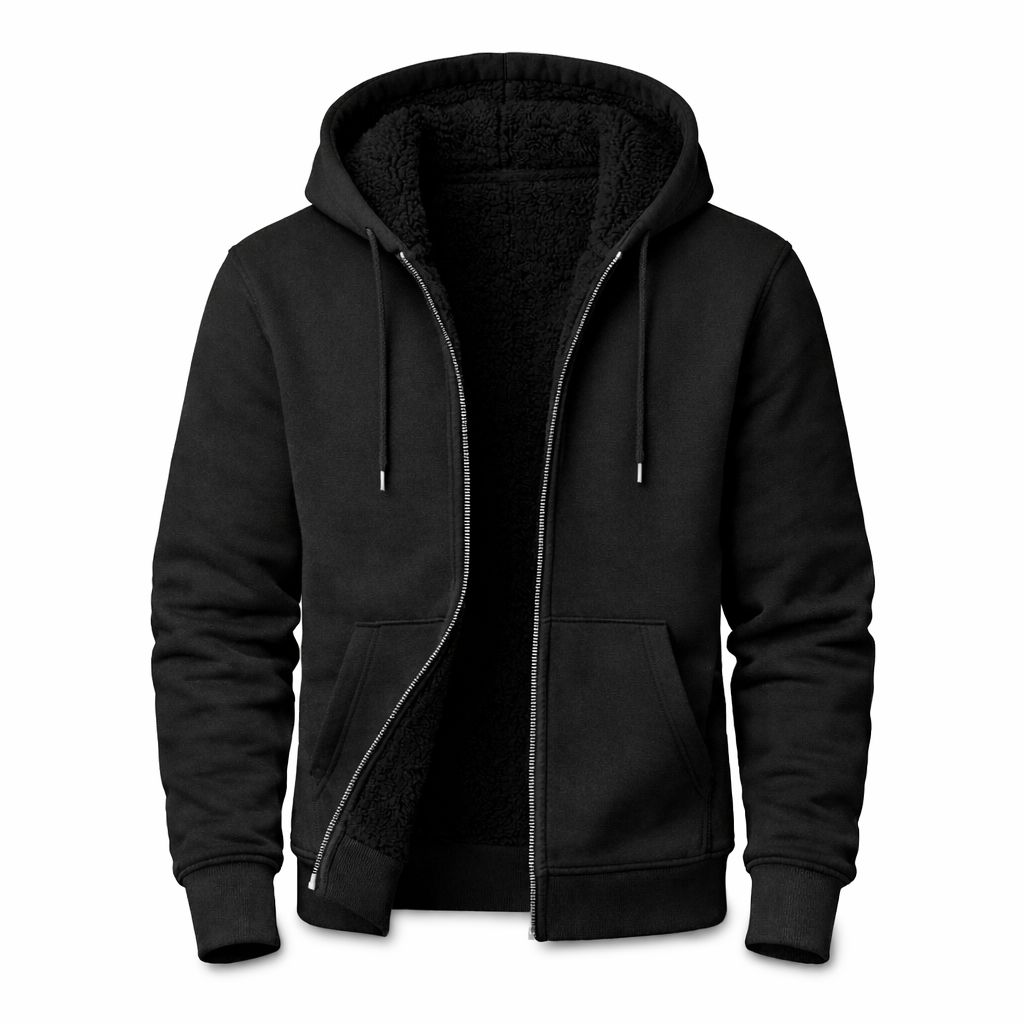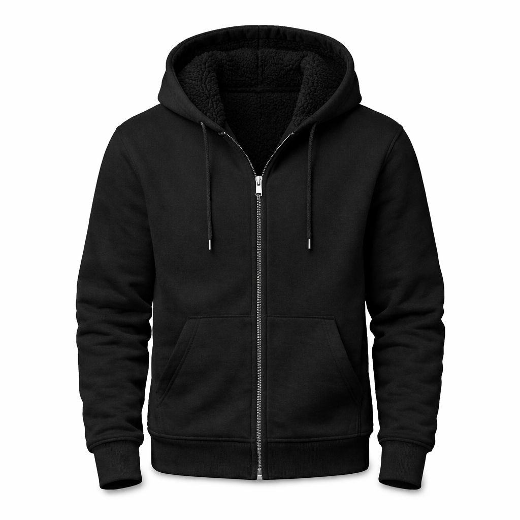 Cotton Fleece Sherpa Lined Zip-Up Hoodie – Assorted Sizes (S–XL)