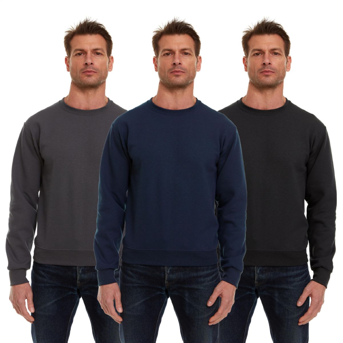 12 Wholesale Unisex Fleece Line Cotton Crew Neck Sweat Shirt Assorted Gray Navy Black Size Large