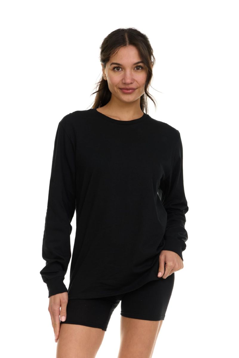 12 Wholesale Womens Cotton Long Sleeve Oversized T-Shirts, Casual Fit Tops, Dark Assorted Size Medium