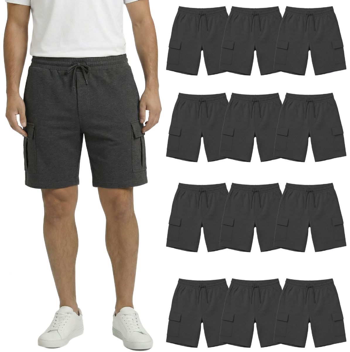 12 Wholesale Yacht & Smith Mens 5 Pocket Cargo Shorts, Heather Gray Size Large