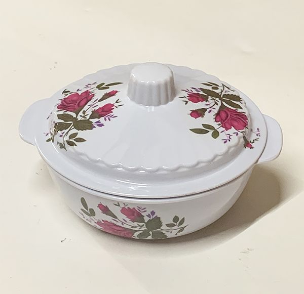 Serve and store your favorite dishes with ease using this 7 Inch Bowl With Lid Set, crafted from high-quality plastic for durability and everyday use. Featuring a white base with a charming floral print, this stylish bowl is ideal for food prep, storage, or serving meals at home or on the go.