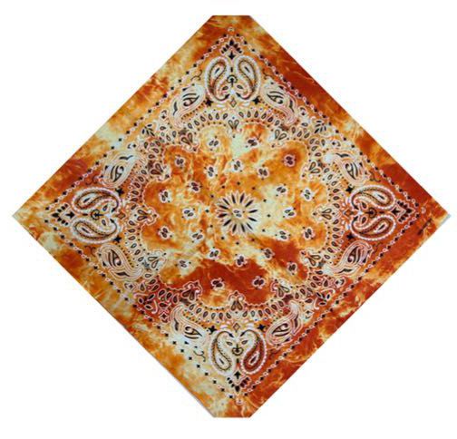 The Orange Tie Dye Bandana is designed to add a vibrant, trendy accessory to your outfit while providing versatile uses like headwear, neckwear, or face covering.