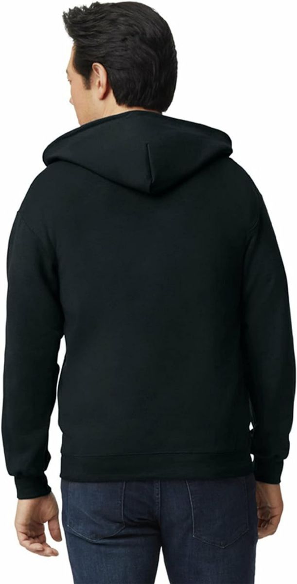 Design: Classic black color with a full-length zipper, adjustable hood, and front pockets