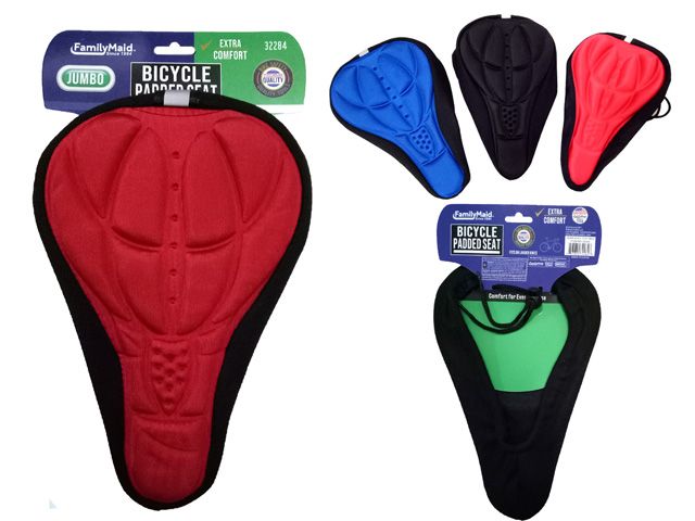 This Bicycle Padded Seat Pad is perfect for all your cycling comfort needs. With a size of 6.7"X10.6", it's made of gel foam, providing a comfortable seating experience. The seat pad comes in black, blue, and red colors.