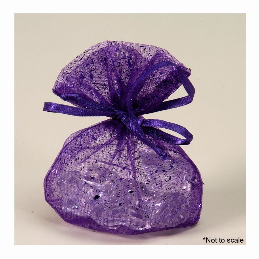 These purple glittered organza bags add a touch of sparkle and royalty to your favors and gifts. The shimmering glitter and rich purple color create a luxurious and festive presentation.