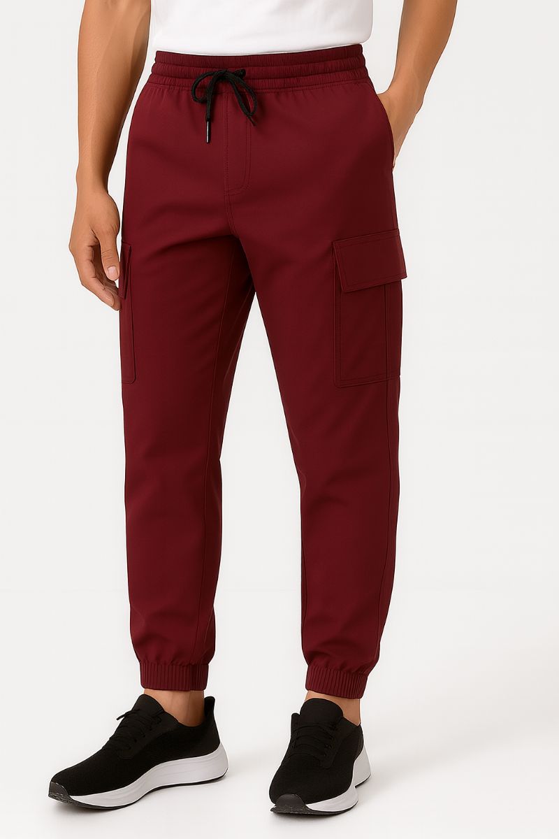 24 Wholesale Mens Cotton Fleece Cargo Joggers In Wine Red Assorted Sizes S-xl