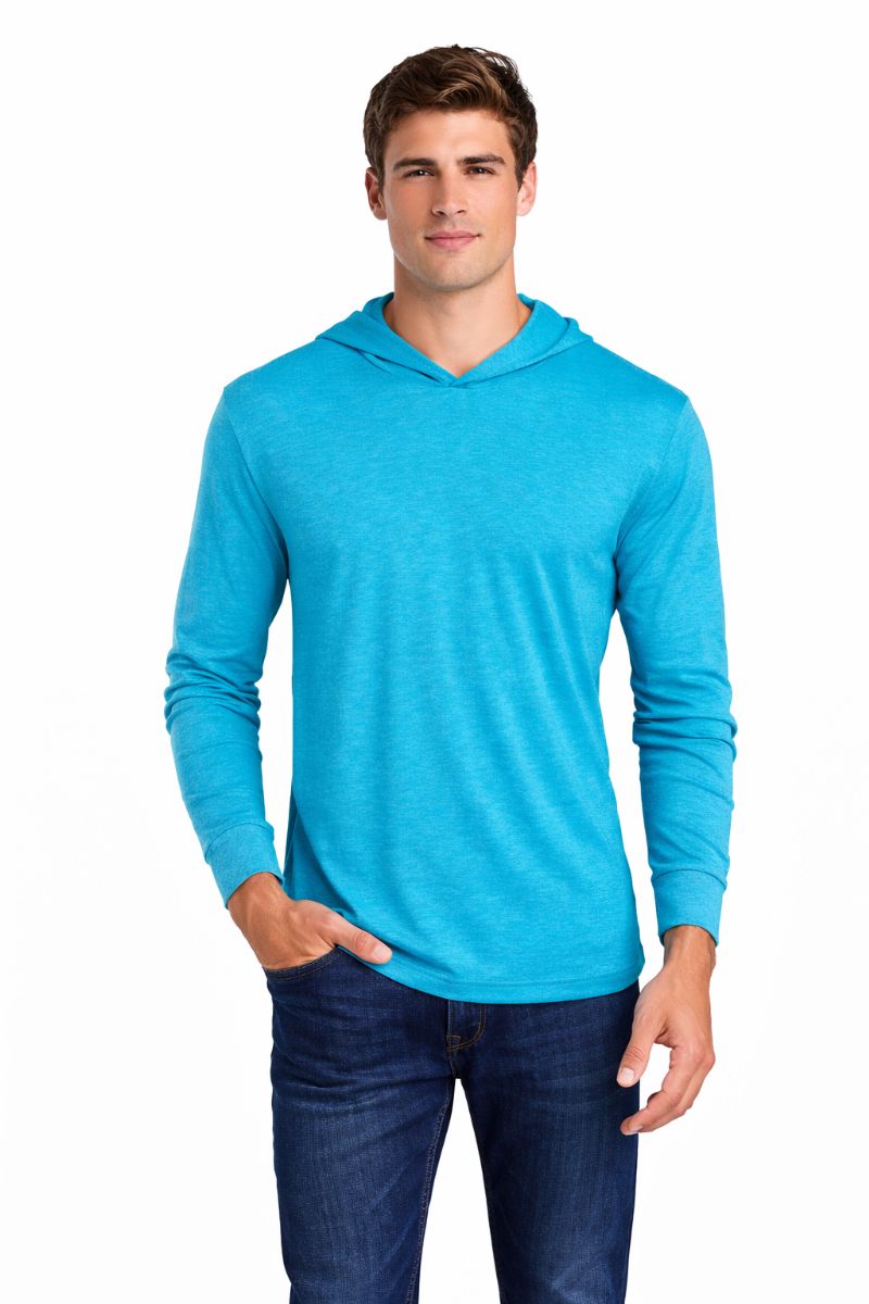 2 Wholesale Mens Unisex Triblend Hooded Long Sleeve Pullover T-Shirt Size Medium Tahiti Blue