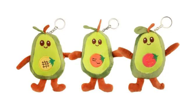 This avocado plush key chain with a fruit belly design adds a fun and quirky touch to your keys or bag. The keychain features a soft plush construction and a cute avocado design.