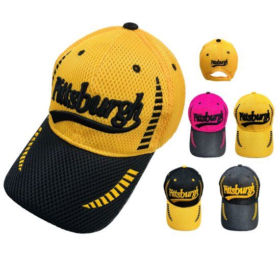 Stay cool and comfortable with our wholesale pack of 36 Air Mesh Pittsburgh hats. Featuring a classic Pittsburgh design and breathable air mesh fabric, these hats are perfect for sports events, outdoor activities, or everyday wear. Assorted colors available.