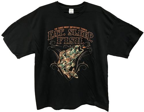 Upgrade your casual wardrobe with this black T-shirt featuring a bold multicolor Eat Sleep Fish graphic, made from high quality fabric for durability, softness, and comfort. Available in assorted plus sizes XXL and XXXL, this stylish and lightweight shirt is perfect for general occasions, events, travel, and more.
