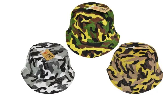 Stay stylish and protected from the sun with this camo-themed bucket hat, perfect for outdoor adventures and casual wear.