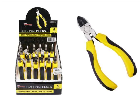 Handle your cutting tasks with ease using the Diagonal Pliers Cushion Grip 5 Inch, crafted from high-quality metal for durability and long-lasting performance. Featuring a black and yellow heavy-duty handle with a non-slip cushion grip, these pliers provide comfort and control during use, making them ideal for home, workshop, or professional projects. Comes packaged in a display box for easy storage and presentation.