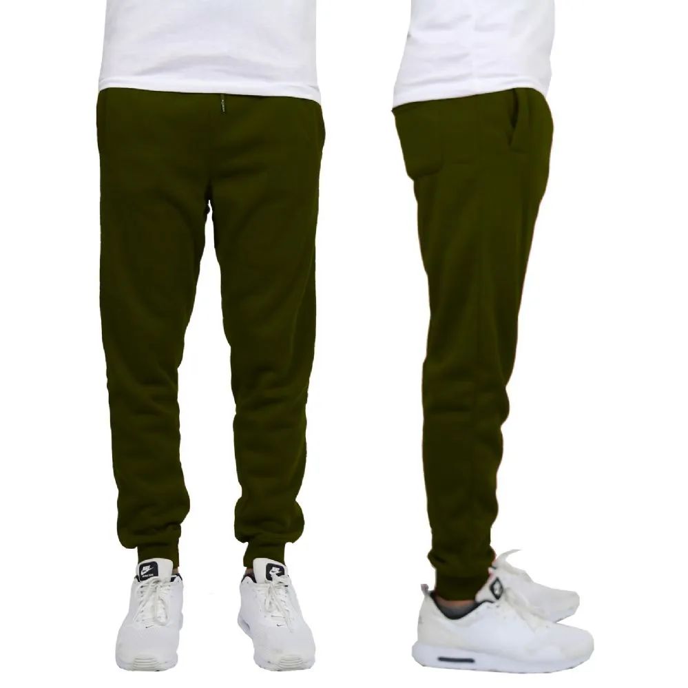 24 Wholesale Men's Heavy Weight Joggers In Olive Assorted Sizes