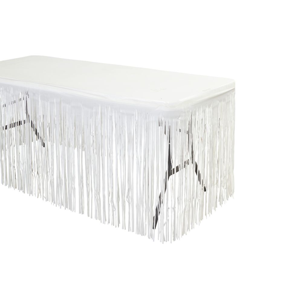 These white metallic foil table skirts add a touch of sparkle and sophistication to your event tables. The 14ft length fits standard banquet tables, and the shimmering white color complements any décor.