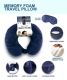 24 Wholesale Navy Travel Neck Pillow And Eye Mask Set - Memory Foam Pillow 2 Piece Set In Velvet With Eye Mask