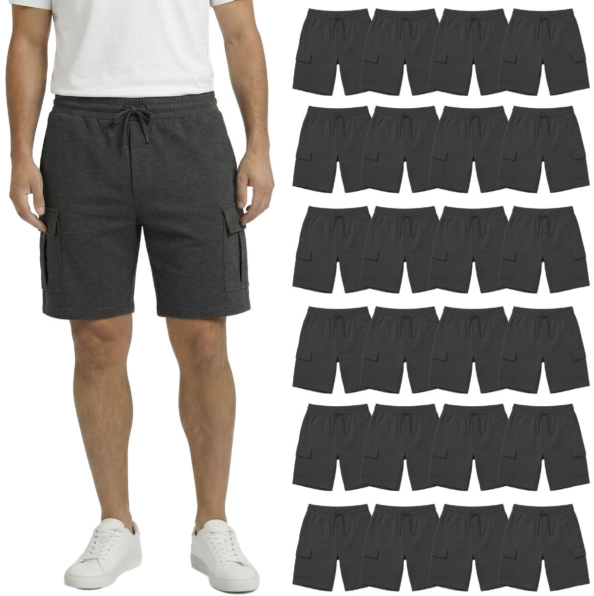 24 Wholesale Yacht & Smith Mens 5 Pocket Cargo Shorts, Heather Gray Size Large