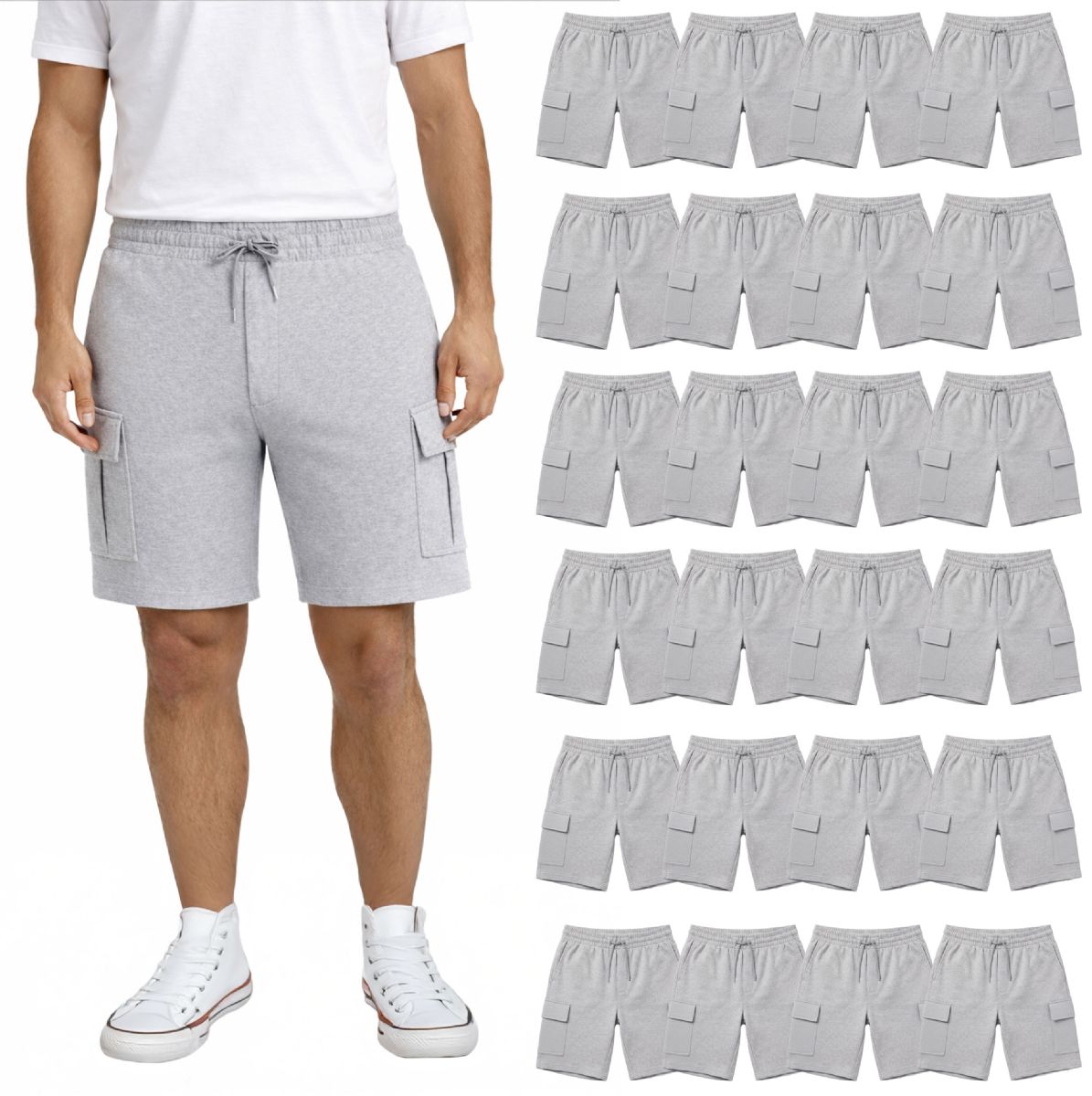24 Wholesale Yacht & Smith Mens 5 Pocket Cargo Shorts, Heather Gray Size Large