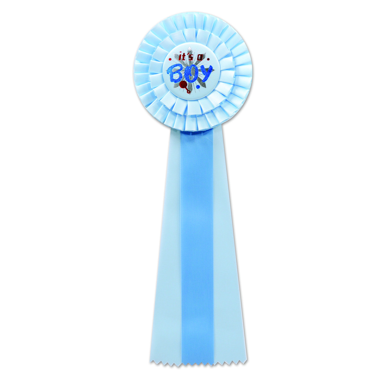 Celebrate the arrival of a newborn boy with this deluxe "It's A Boy" rosette. The vibrant blue ribbon and stylish design make it a perfect accessory for baby showers or welcoming parties. With its high-quality finish and attention-grabbing details, this rosette will make the special occasion even more memorable.