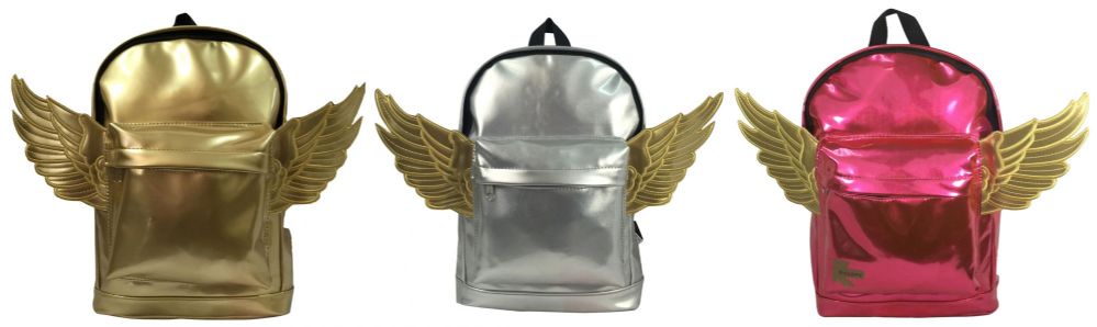 These backpacks measure 12"x9"x5" and are constructed from high quality PVC material. They feature zippered main compartment, zipper front pocket and die cut wings with embroidered edges outline. The mini back pack is nicely padded and has adjustable shoulder straps.