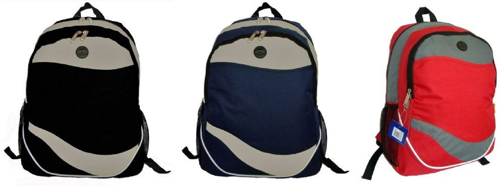 Features: Large zippered main compartment, front pouch organizer, mesh side pockets, padded adjustable shoulder straps