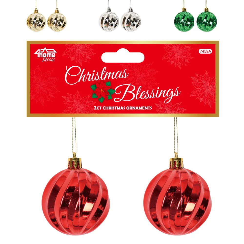 Bring a classic holiday vibe to your décor with this 2-pack of Christmas balls featuring assorted striped patterns in four festive colors.