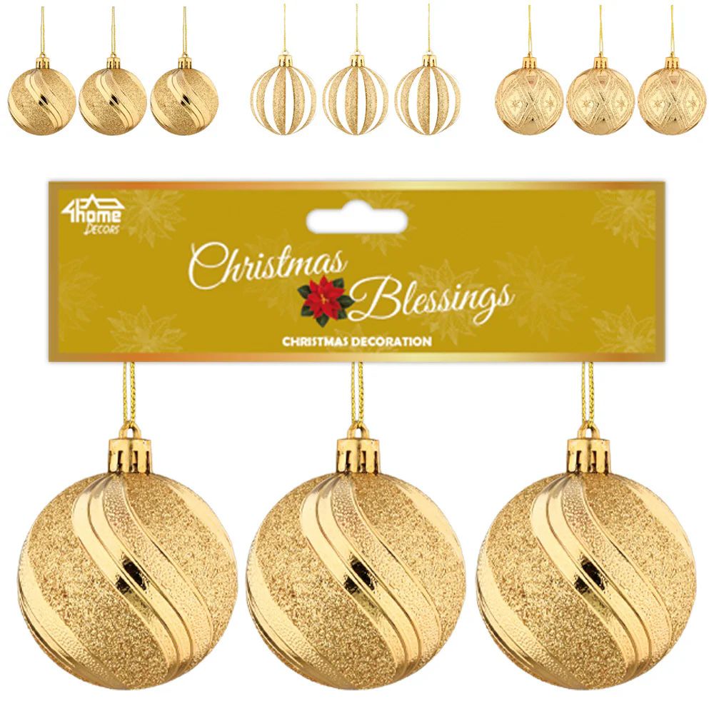 Add a festive sparkle to your holiday decor with this 3-pack of assorted gold Christmas ornaments, perfect for brightening up any tree or holiday display.