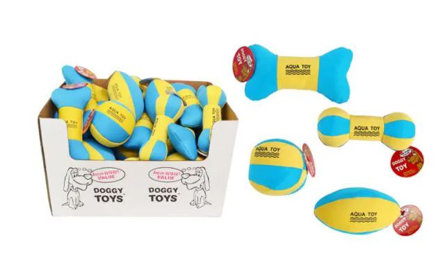 This BULK order features floating aqua dog toys, designed for water-based play and exercise. These toys are ideal for pool and beach activities, providing fun and engaging playtime for dogs.