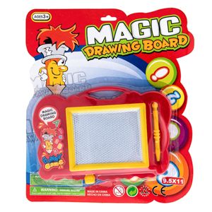 Magic drawing board toy provides endless opportunities for creativity and fun. Product ships in a variety of fun colors! Product: 7.75 x 5.5 x 0.5 inches. Packaging: 9.5 x 11 x 0.5 inches in a carded blister pack.