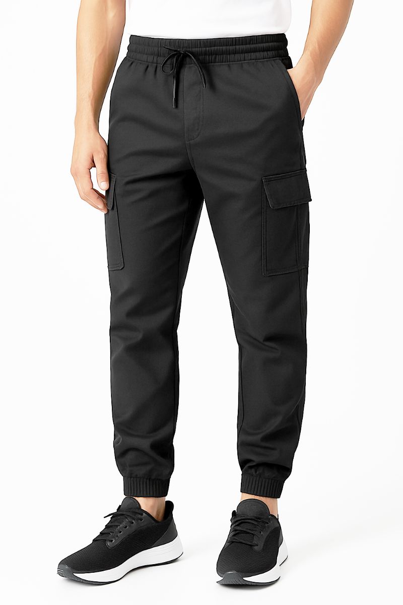 36 Wholesale Mens Cotton Fleece Cargo Joggers In Black Assorted Sizes S-xl