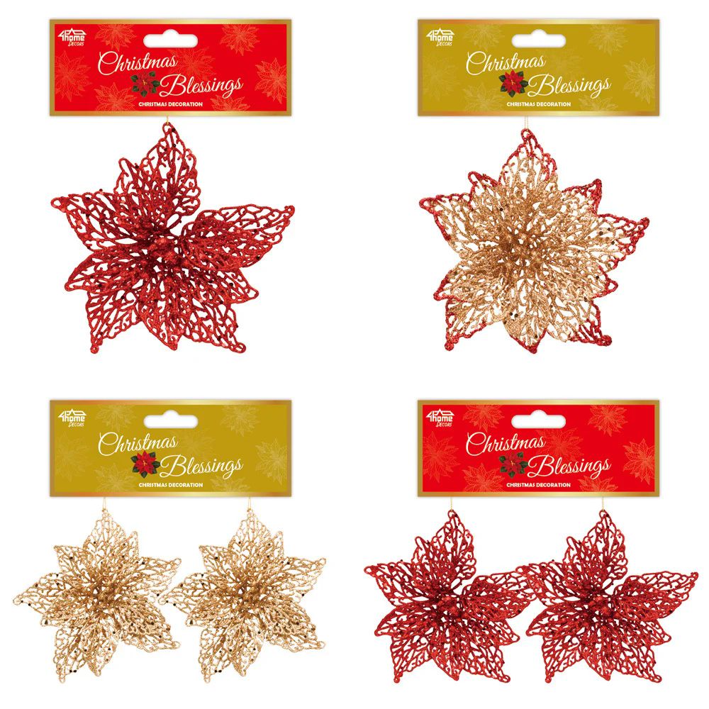 This Poinsettia Assorted ornament set is designed to add vibrant holiday spirit and elegance to your Christmas decorations.