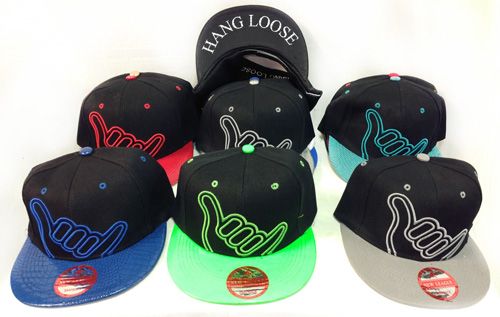 Embrace a laid-back vibe with this cool Snap Back Flat Bill Hat, featuring a "Hang Loose" design in assorted colors. Its flat brim and adjustable snap closure offer a comfortable fit and effortless style, perfect for casual outings and expressing a chill attitude.