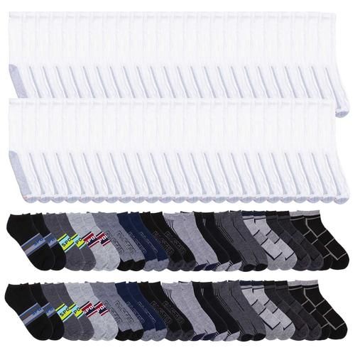 48 Pairs in total, in this mens/boys value pack. 24 pairs white crew socks size 10-13 and 24 pairs of size 10-13 low cut socks in assorted colors. These bulk socks are lightweight, affordable, comfortable, and high quality, made to last. Made of 70% cotton, 25% polyester and 5% elastic. Machine Wash Warm, Do Not Bleach. Shop our entire selection for the best wholesale sock deals.