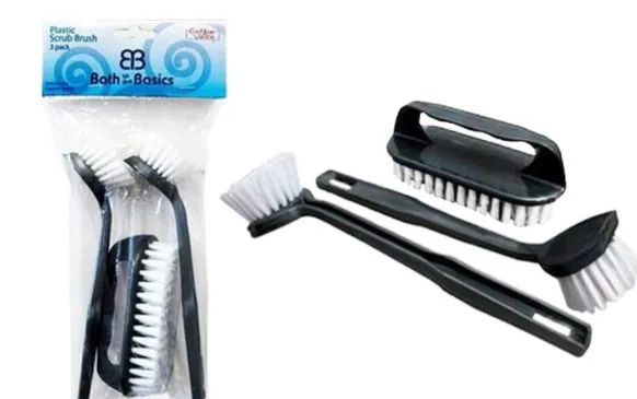 The 3-piece brush set is a practical cleaning essential designed for versatility. Each brush features a sturdy black handle with durable white bristles, making it perfect for various cleaning tasks. With assorted sizes, this set provides the right tool for different surfaces and spaces. Conveniently packed for easy storage or display.