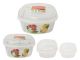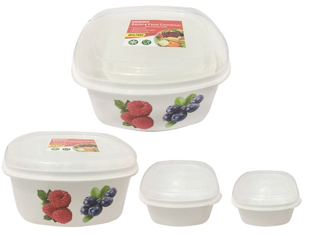 This 3-piece set of square printed food containers is designed for storing, transporting, and organizing meals while keeping food fresh and easily identifiable.