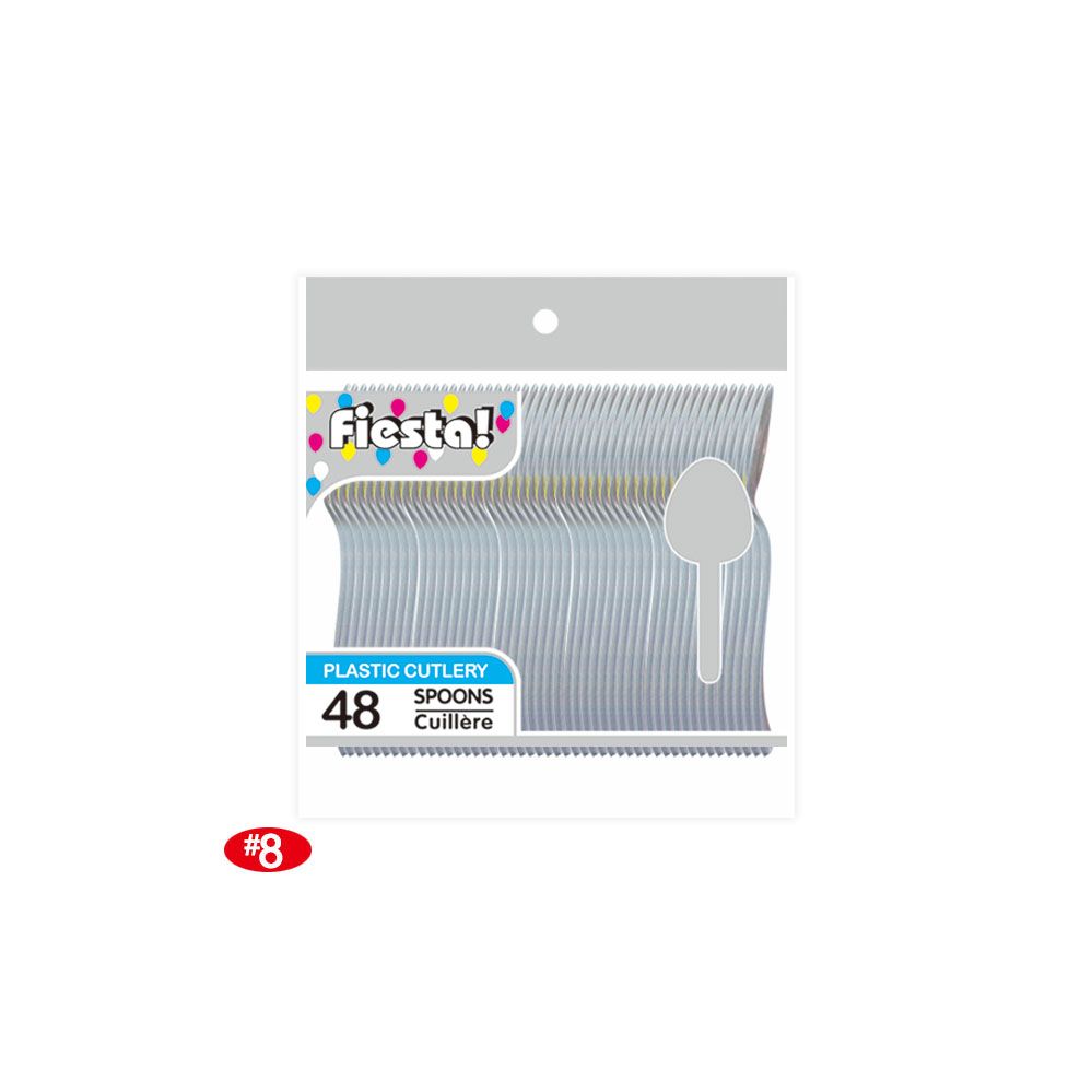 Add convenience and style to any event with the Forty-Eight Count Spoon in Silver, made from high-quality, durable plastic in a standard size, perfect for disposable use at takeouts, parties, picnics, and more, polybagged and peggable for easy display, combining practicality, durability, and a sleek silver finish that enhances every dining experience.
