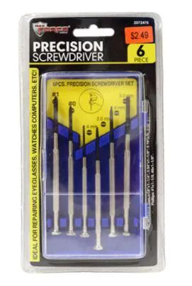 This BULK order includes a set of six precision screwdrivers with various tip sizes. This set is perfect for delicate electronics repair, model building, and other tasks requiring fine-tipped screwdrivers.