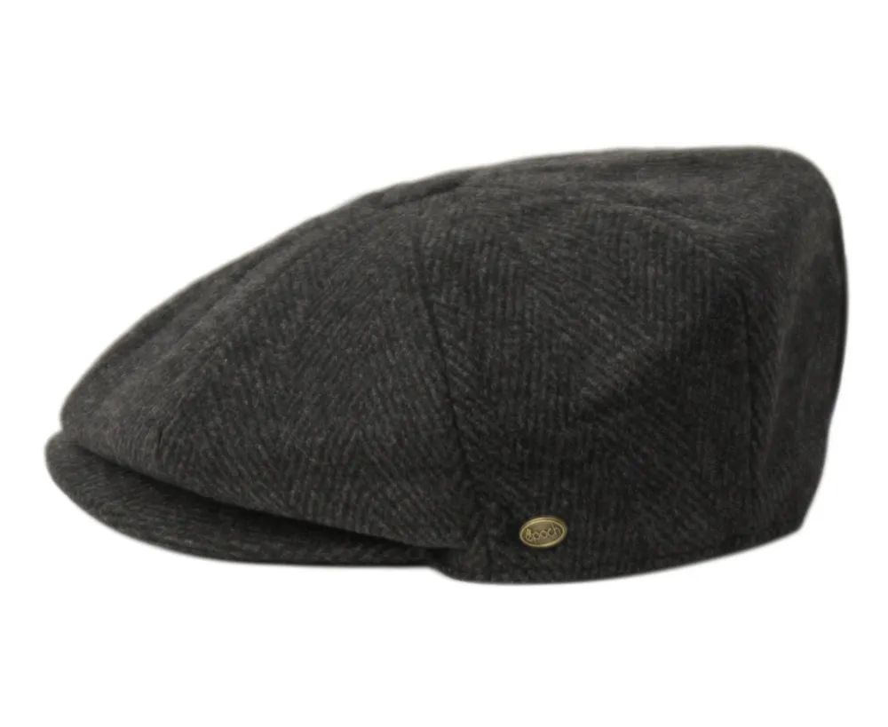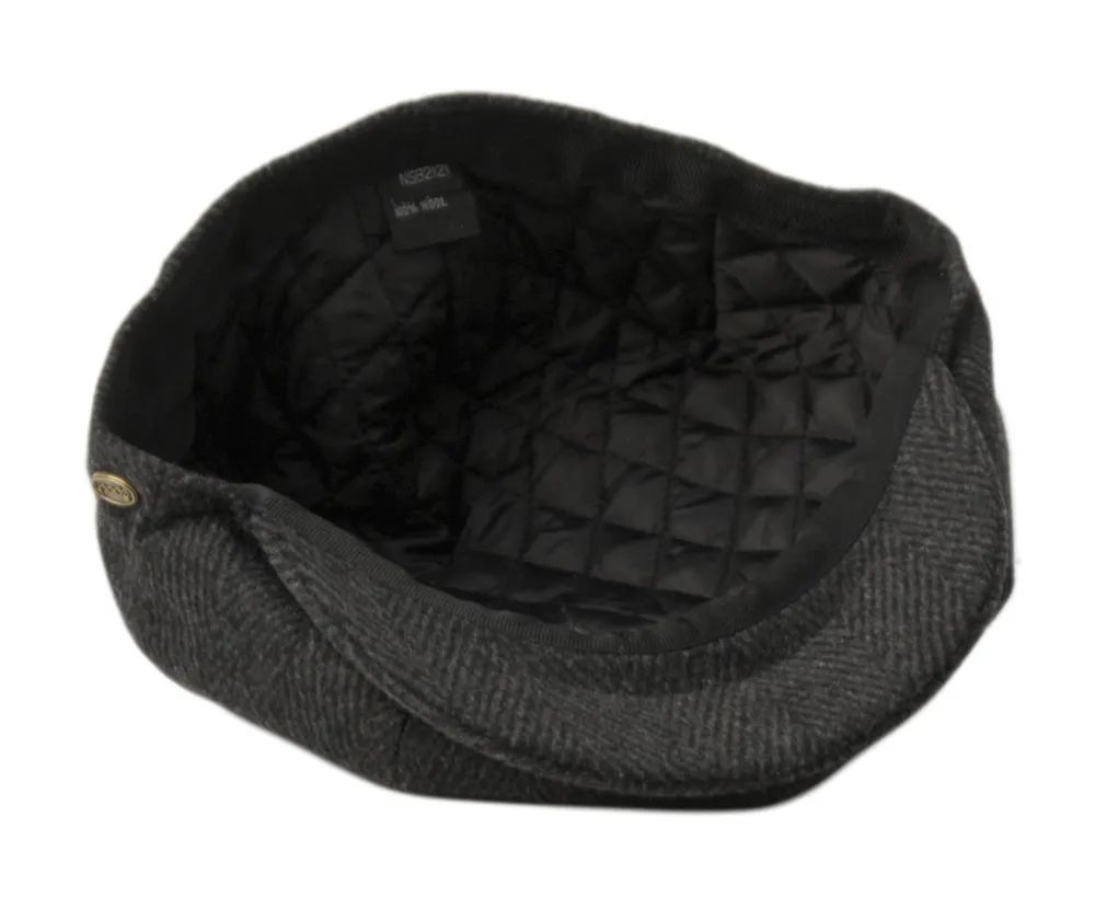 brushed herringbone wool blend newsboy cap with quilted satin lining