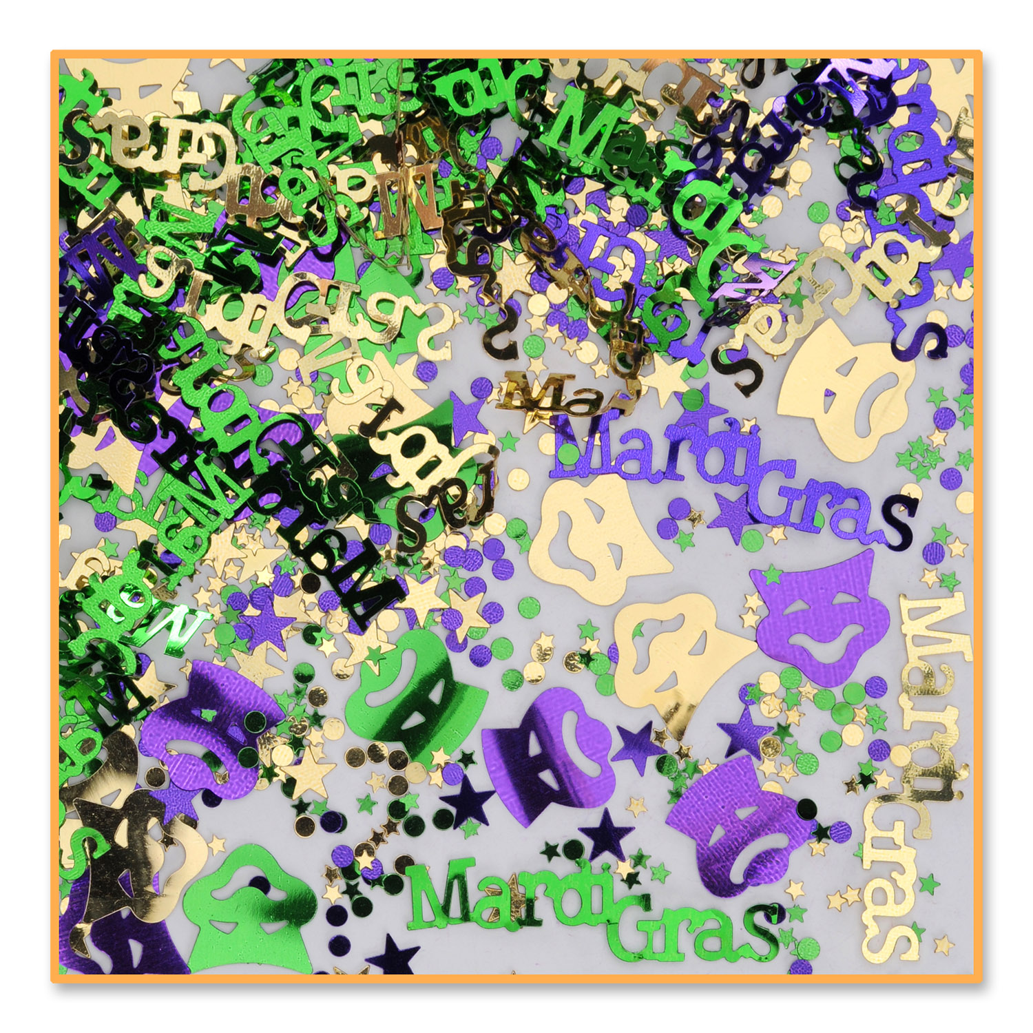 Bring festive flair to your celebration with Mardi Gras confetti in classic gold, green, and purple?perfect for decorating tables, invites, or party favors.