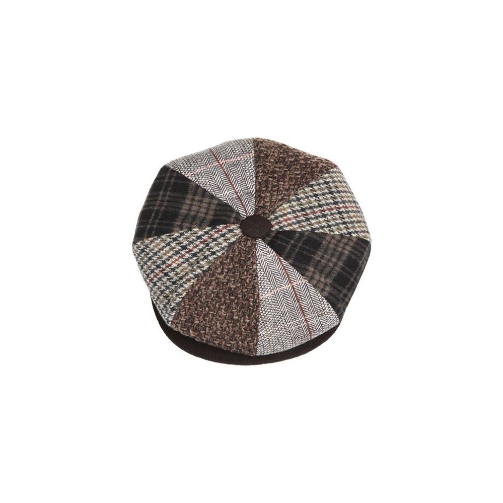 multi patch work wool blend newsboy cap with quilted satin lining