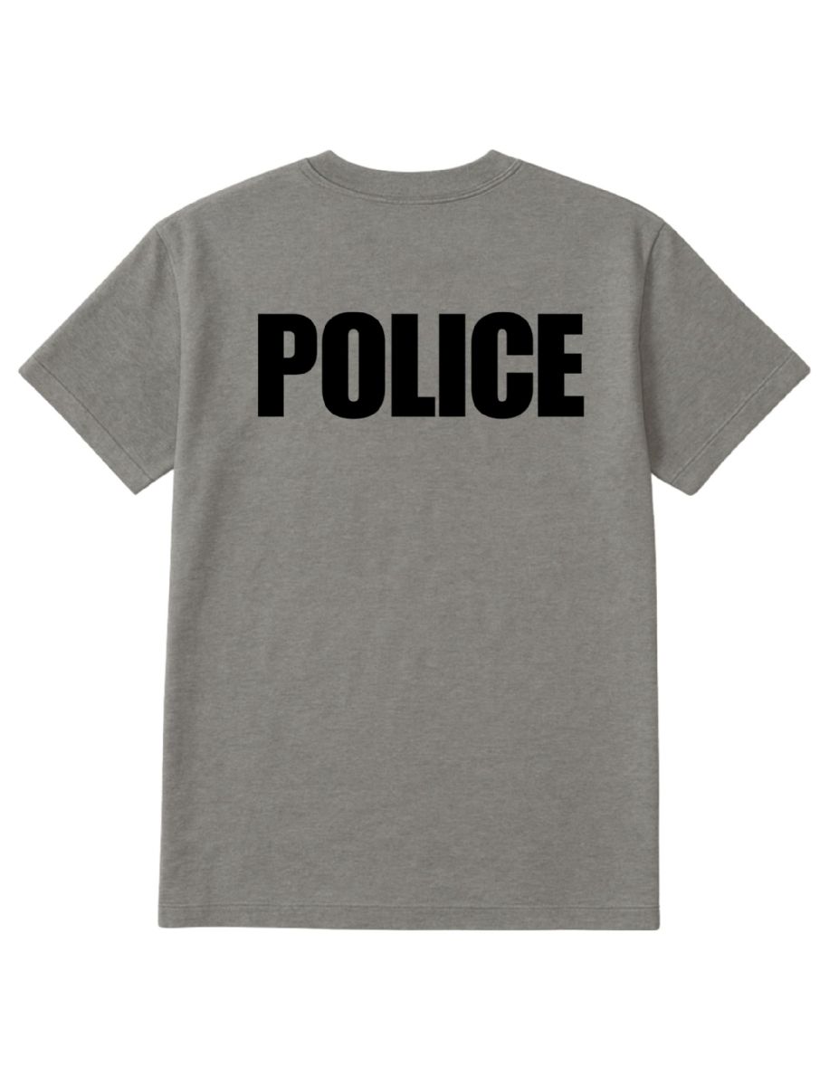 24 Wholesale Unisex Cotton Police Printed T Shirt Gray With Black Print Back And Front Size Large
