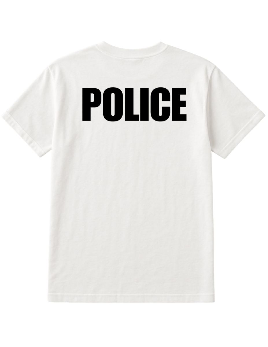 24 Wholesale Unisex Cotton Police Printed T Shirt White With Black Print Back And Front Size Large