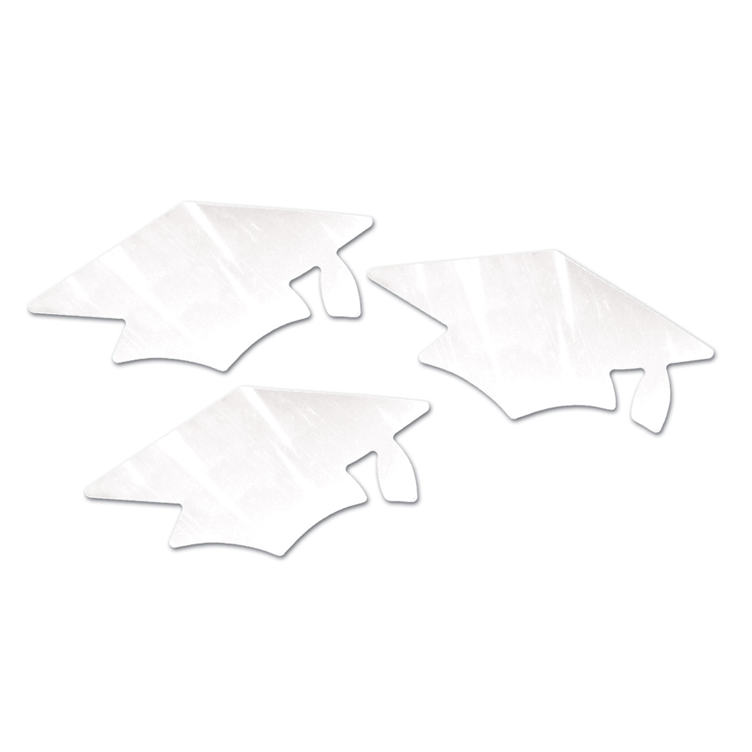 This BULK order includes a collection of white metallic cutouts shaped like graduation caps. These cutouts are perfect for decorating for graduation parties, creating festive banners, or using in other celebratory crafts.