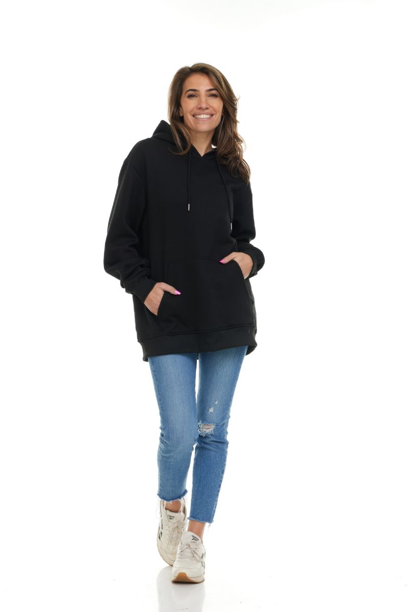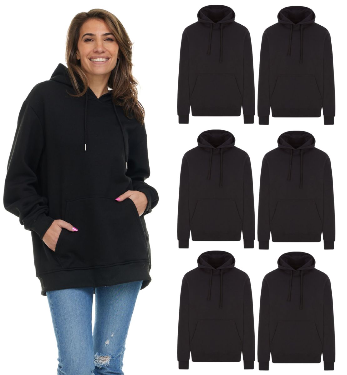 6 Wholesale Women's Cotton Oversized Hoodie Sweat Shirt Black Size Large