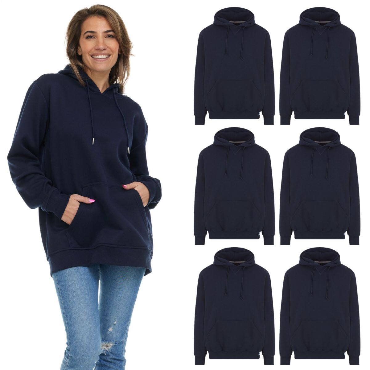 6 Wholesale Women's Cotton Oversized Hoodie Sweat Shirt Navy Size Large